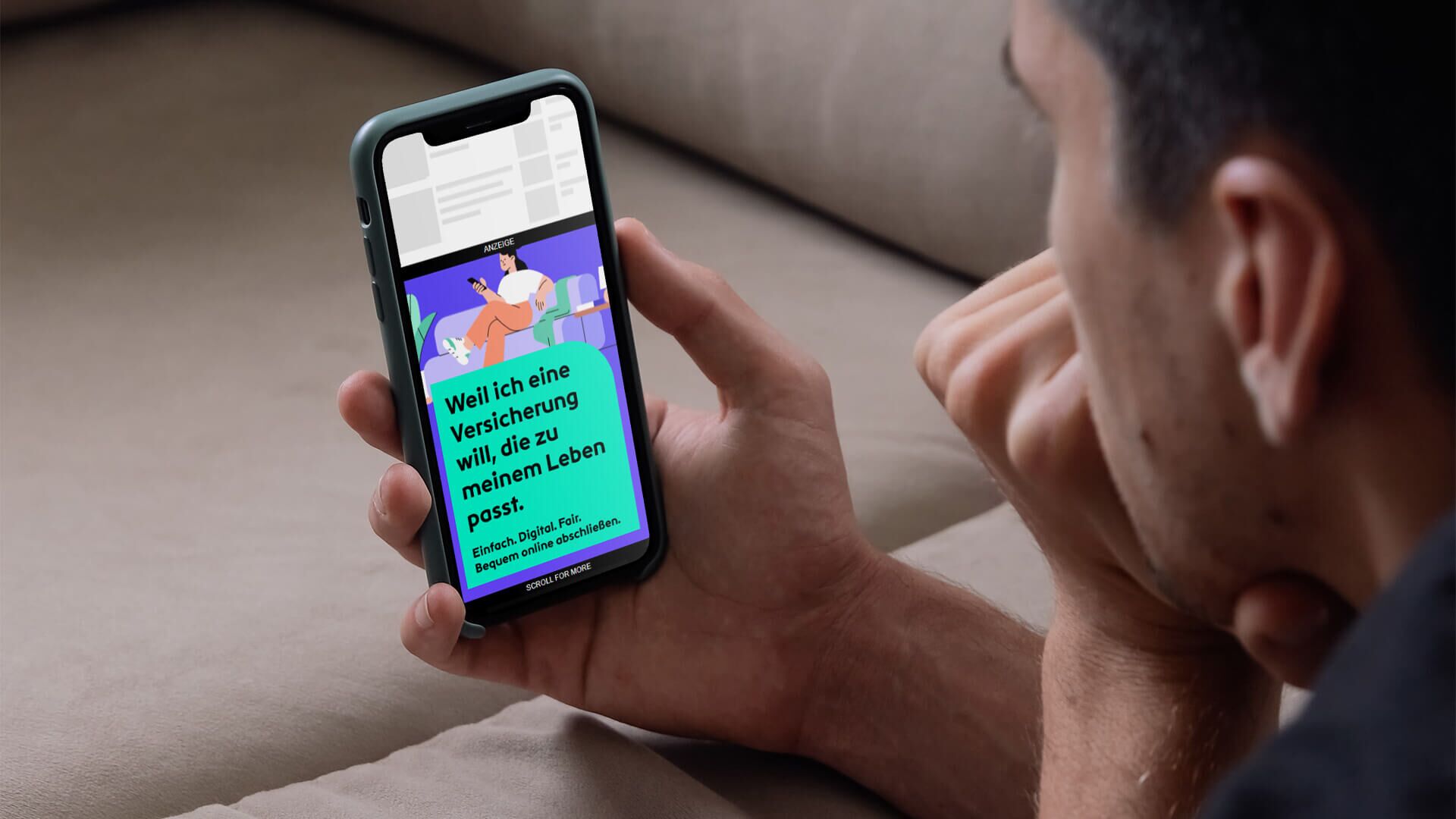 Online. Online. Online! Die Digitalversicherung der Zukunft verlangt selbstredend nach einer digitalen Kampagne für online-affine Zielgruppen. Unterhaltsam, relevant und aus der Lebenswelt der potenziellen Kund:innen kommend.